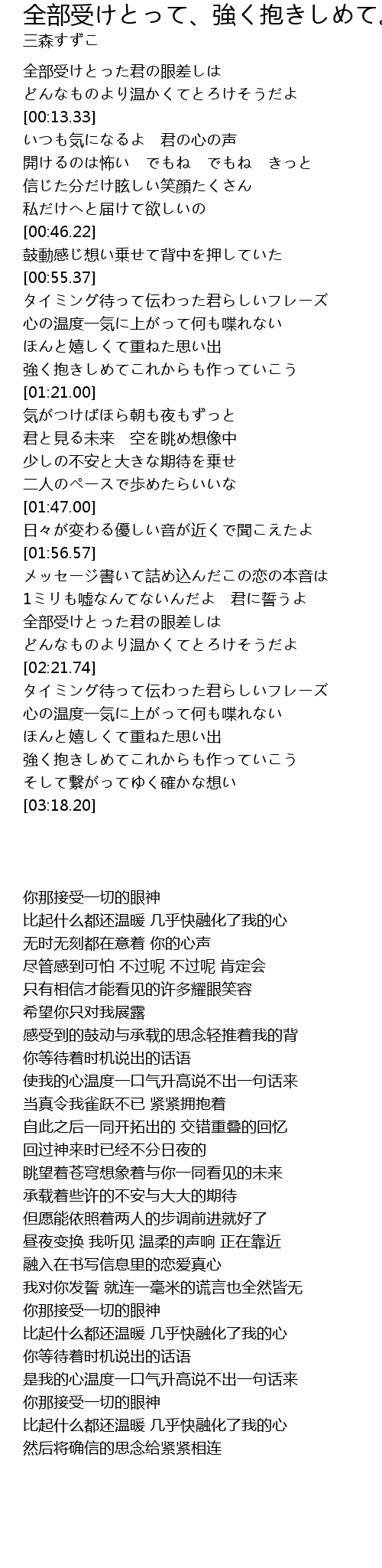 全部受けとって 強く抱きしめて Quan Bu Shou Qiang Bao Lyrics Follow Lyrics